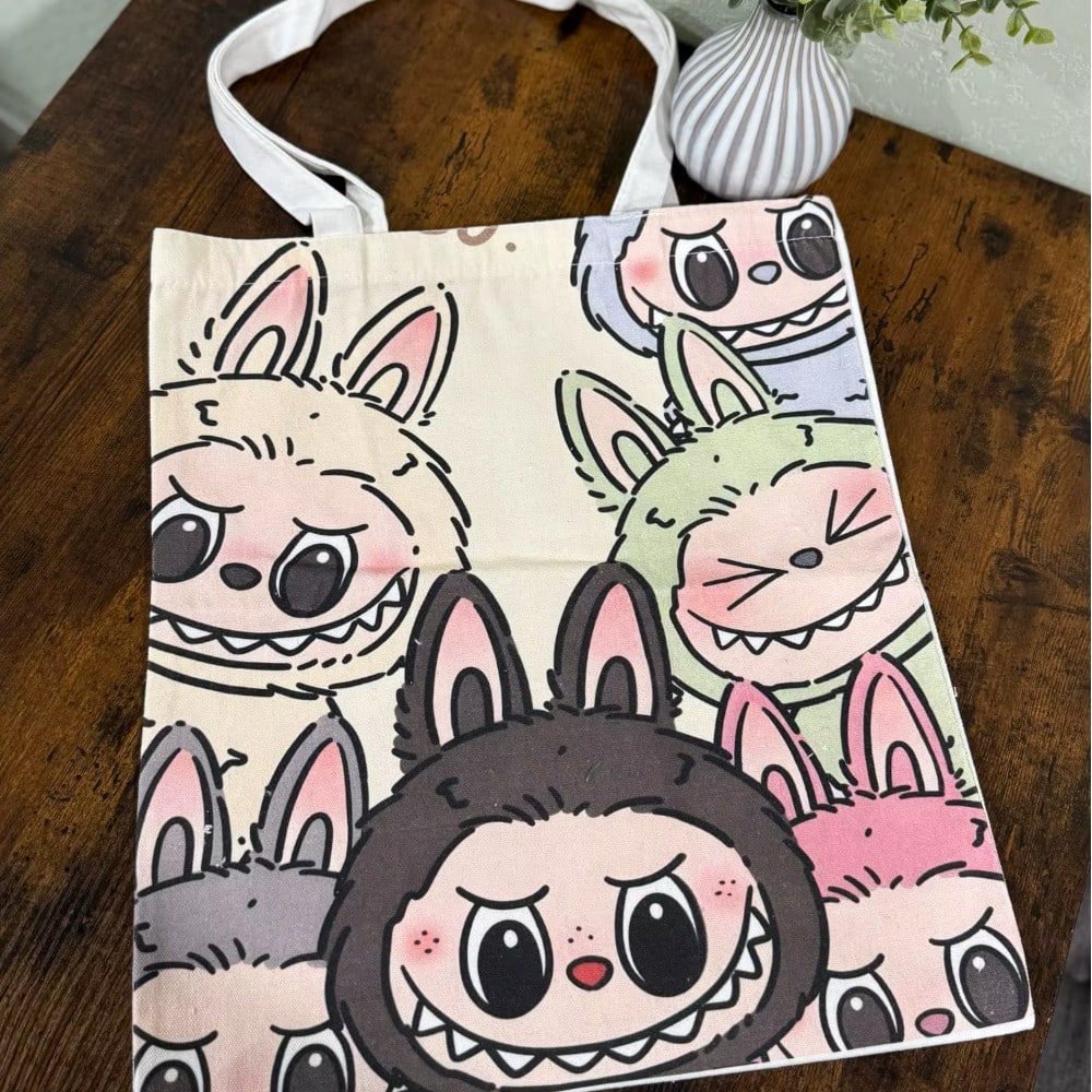 La borsa tote bag Labubu per bambini è perfetta dai 7 anni in su per trasportare libri, giochi o la merenda. Leggera, colorata e comoda da portare, accompagna il tuo bambino ovunque. Un accessorio originale per esprimere il proprio stile e tenere tutto a portata di mano.