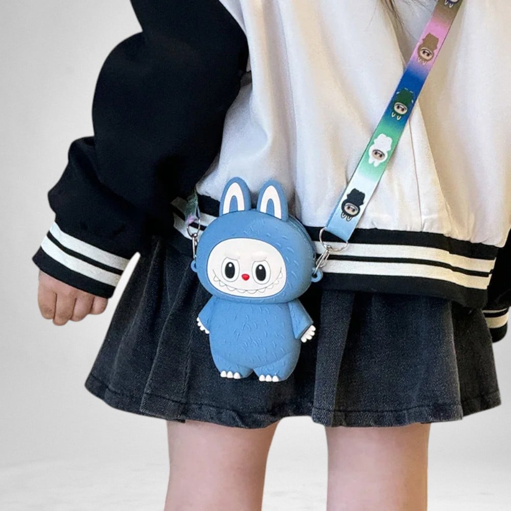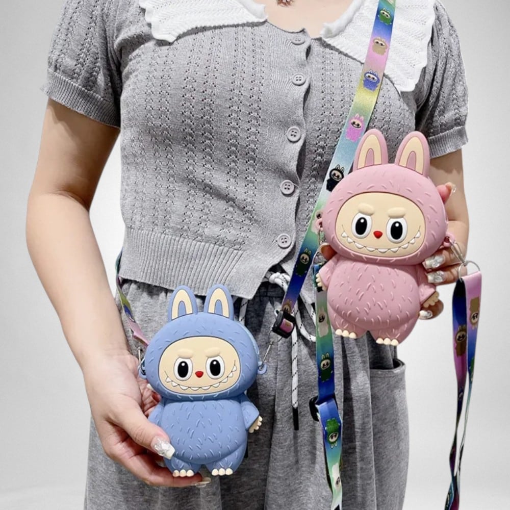 Ecco la borsetta perfetta per far sorridere il tuo bambino! Con la sua forma di simpatico mostriciattolo, le grandi orecchie e la tracolla arcobaleno, la borsetta per bambini mostriciattolo stile Labubu aggiunge un tocco di fantasia a ogni uscita. Leggera e pratica, sarà sempre al suo fianco.