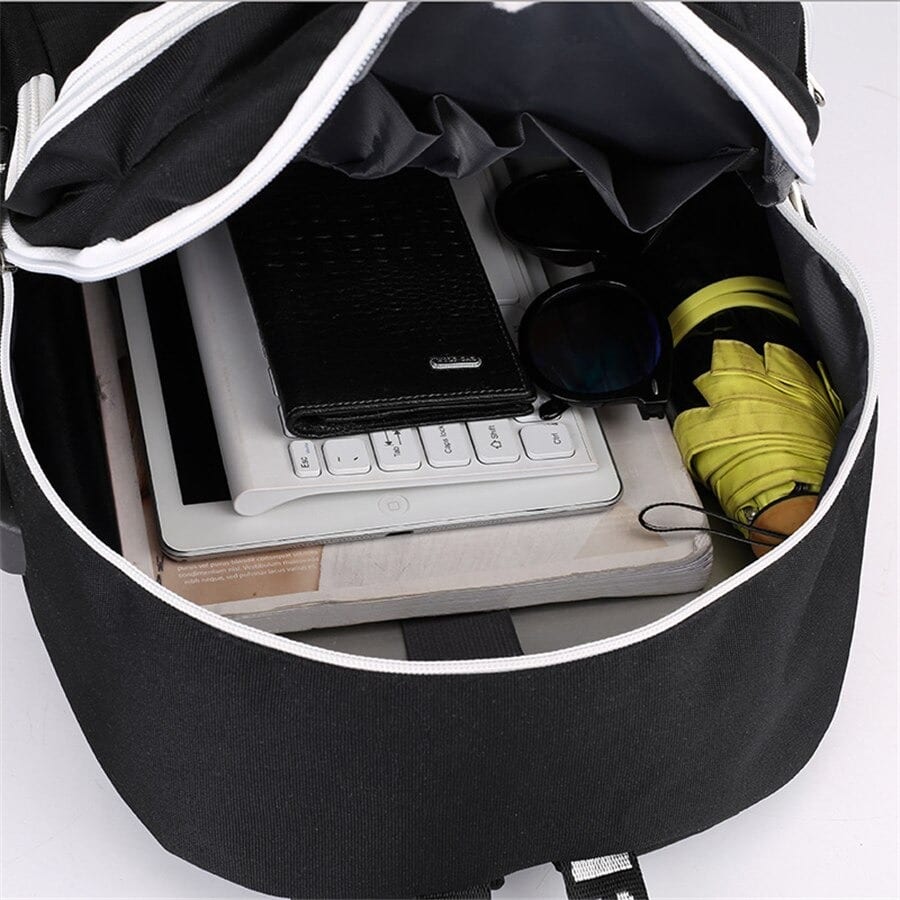 Lo zaino ha una porta USB incorporata, per cui può ricaricare il suo telefono o il suo tablet con facilità. Inoltre, ha uno scomparto principale spazioso e una tasca frontale con cerniera, perfetta per riporre tutte le sue cose. I fan degli anime non potranno fare a meno di questo zaino pratico e alla moda!
