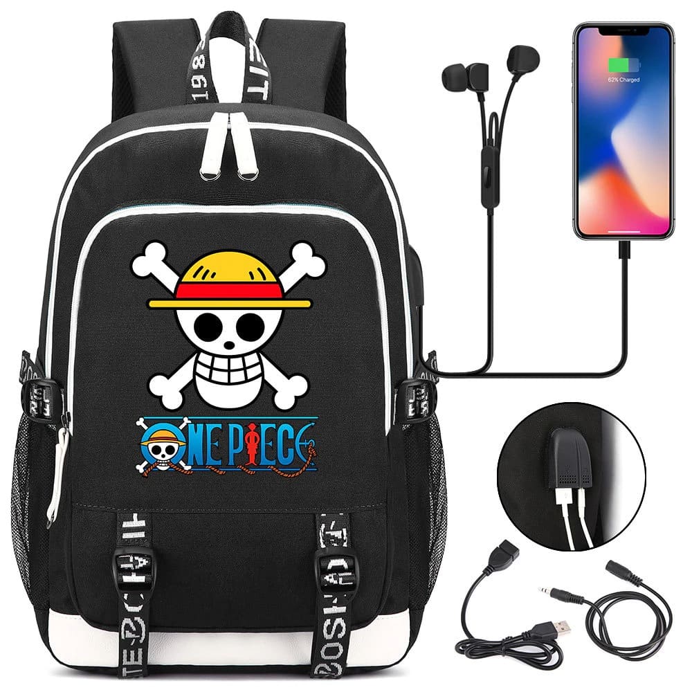 Questo zaino One Piece con caricatore USB è il compagno ideale per tutti i fan dell’anime! È realizzato in poliestere di alta qualità e rifinito con uno standard elevato. Gli spallacci sono regolabili e la fascia toracica è rimovibile, in modo da adattarsi perfettamente al suo corpo.