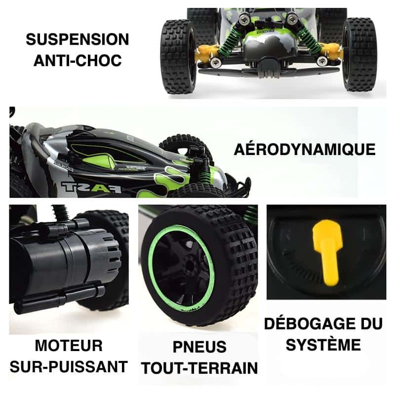 Vuole fare il regalo più bello al suo bambino? Non si lasci sfuggire la nostra nuovissima auto telecomandata fuoristrada! Grazie alla sua potenza e al suo design aerodinamico, può viaggiare ad alta velocità anche nelle condizioni più estreme!