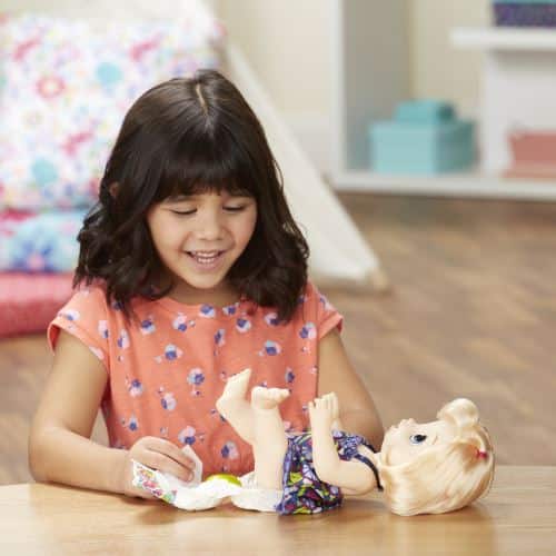 Venga a scoprire la nostra nuova bambola con cucchiaio Baby Alive. Questa bambola ha funzioni che la fanno assomigliare a una persona vera, mangia e in più fa i suoi bisogni, avendo un pannolino in modo che sua figlia possa cambiarla e prendersi cura di lei come se fosse un bambino vero.